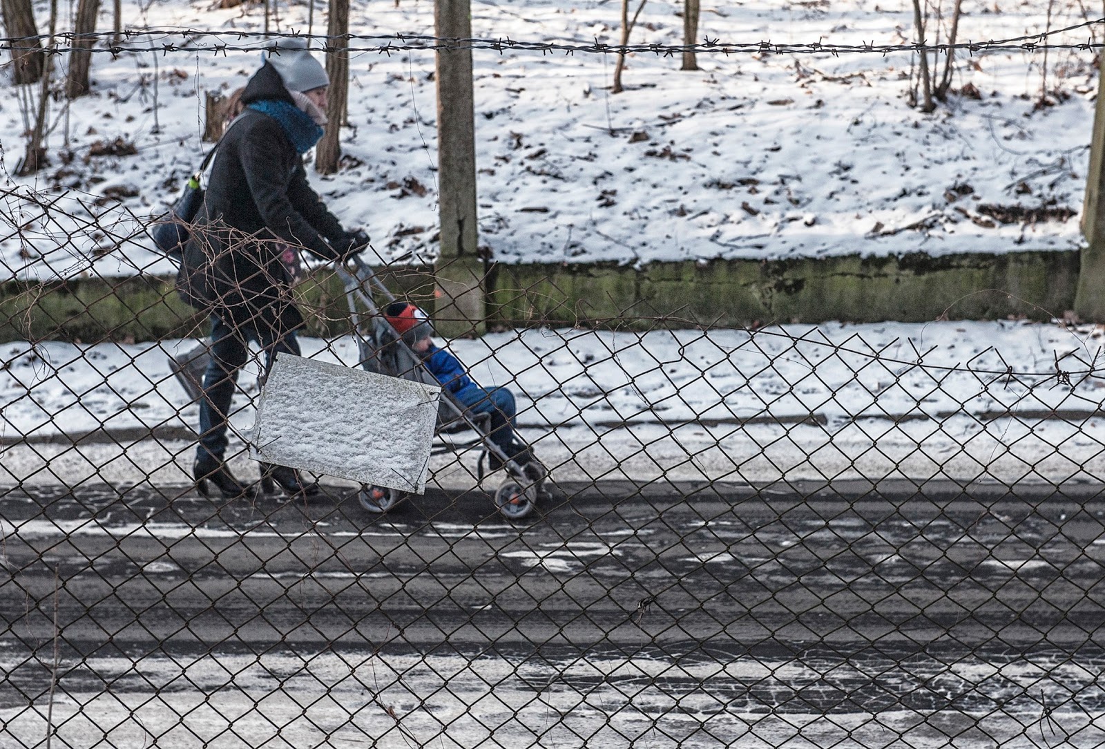Ślady znikają w śniegu, nie minęło jeszcze pięć minut. Czuć